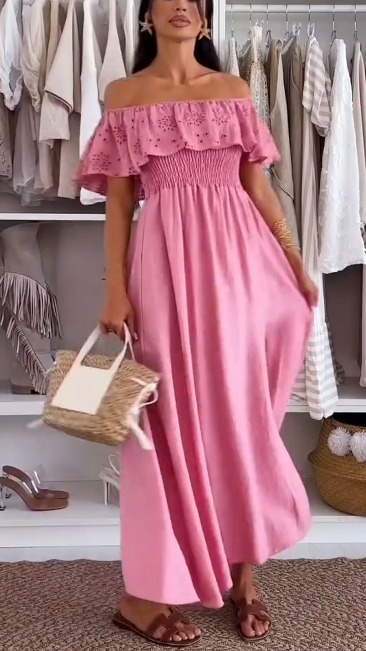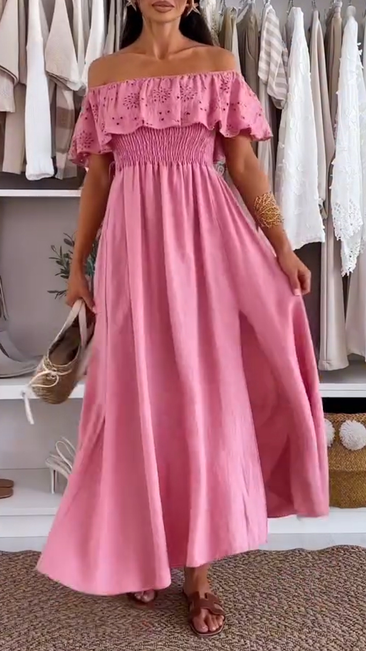 Ladies' One Collar Printed Hollow Solid Color Casual Dress