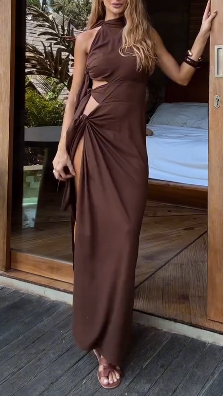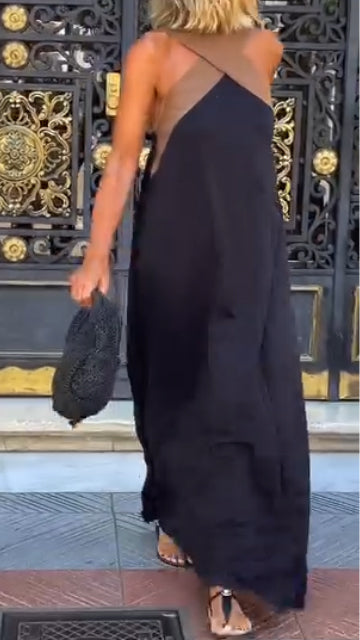 Women's Cross Halter Neck Sleeveless Stitching Dress