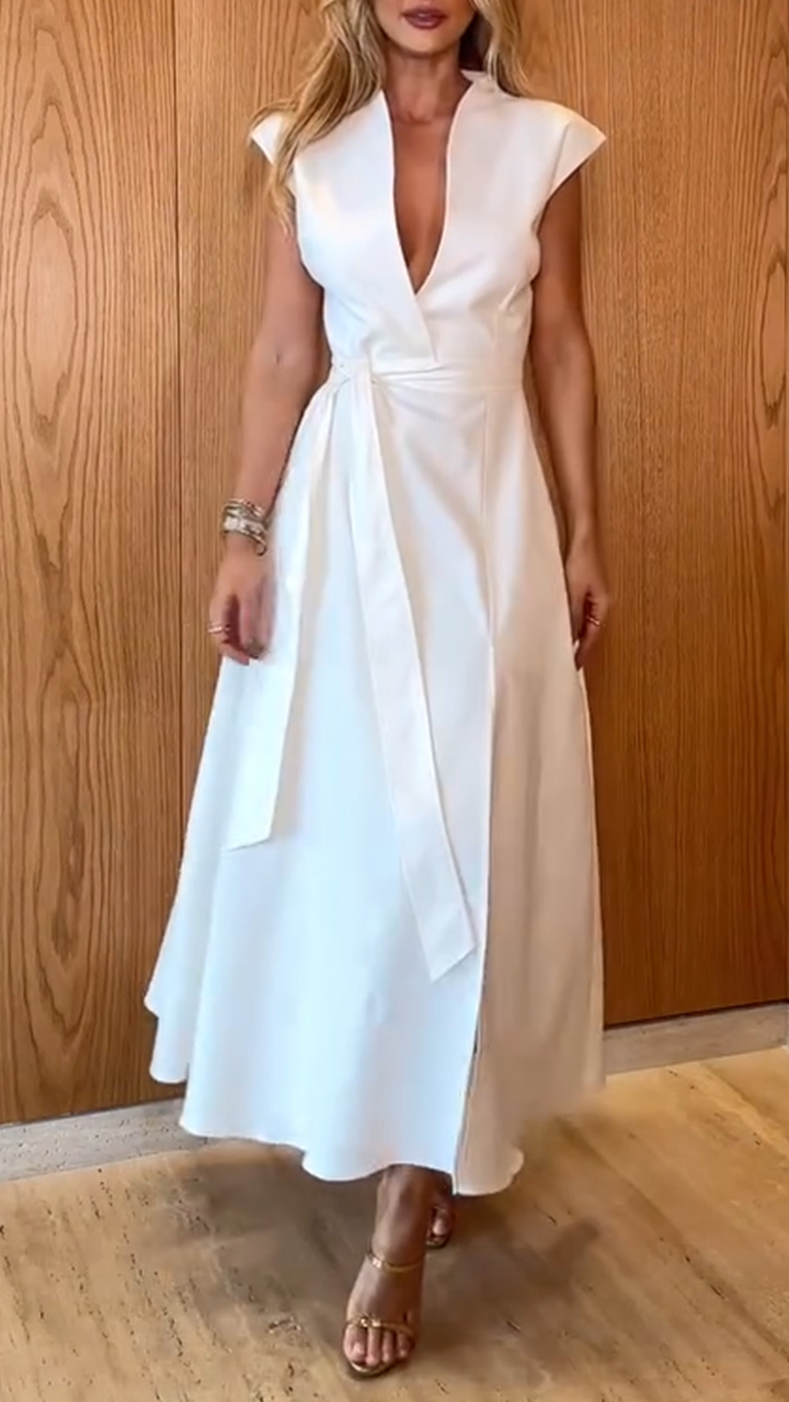 Women's V-neck Solid Color Mid-length Sleeve Dress