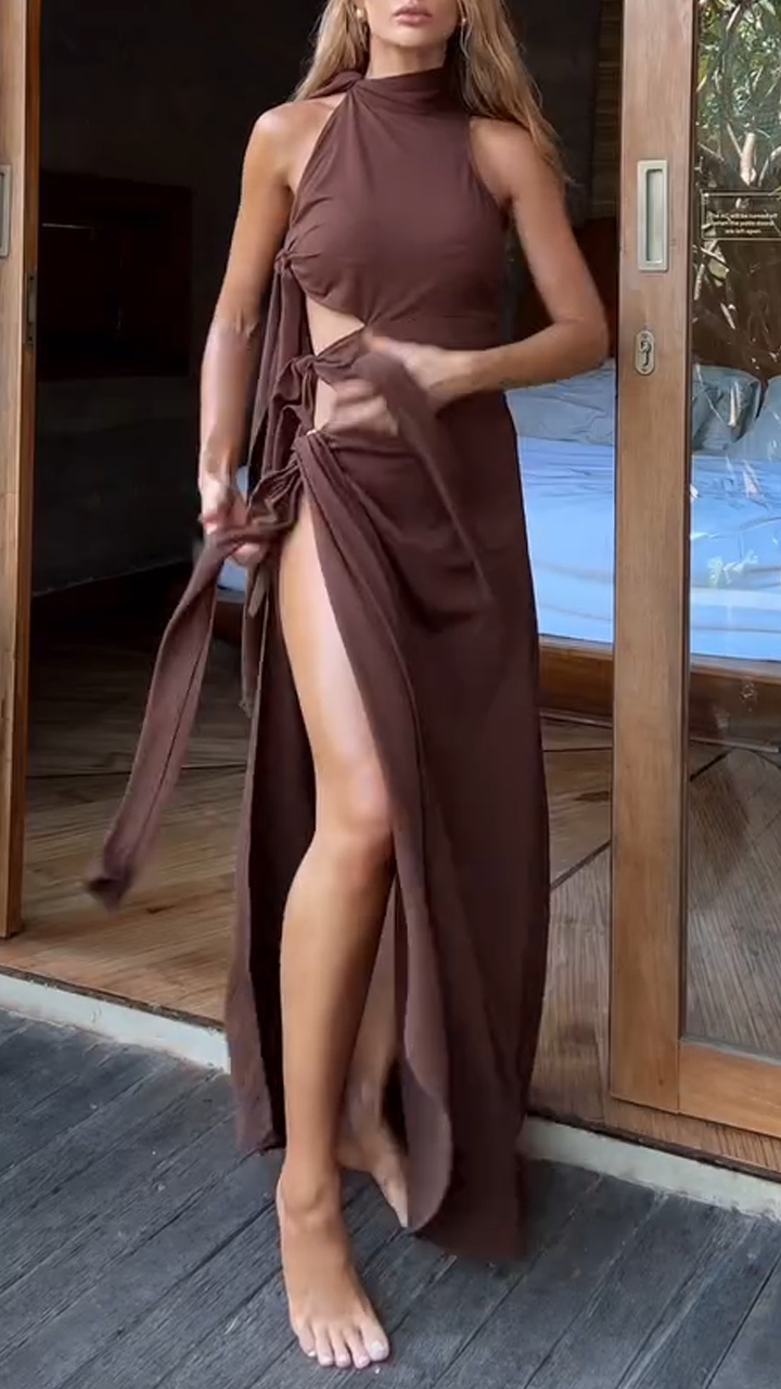 Women's Halter Neck Slit 3D Flower Holiday Dress