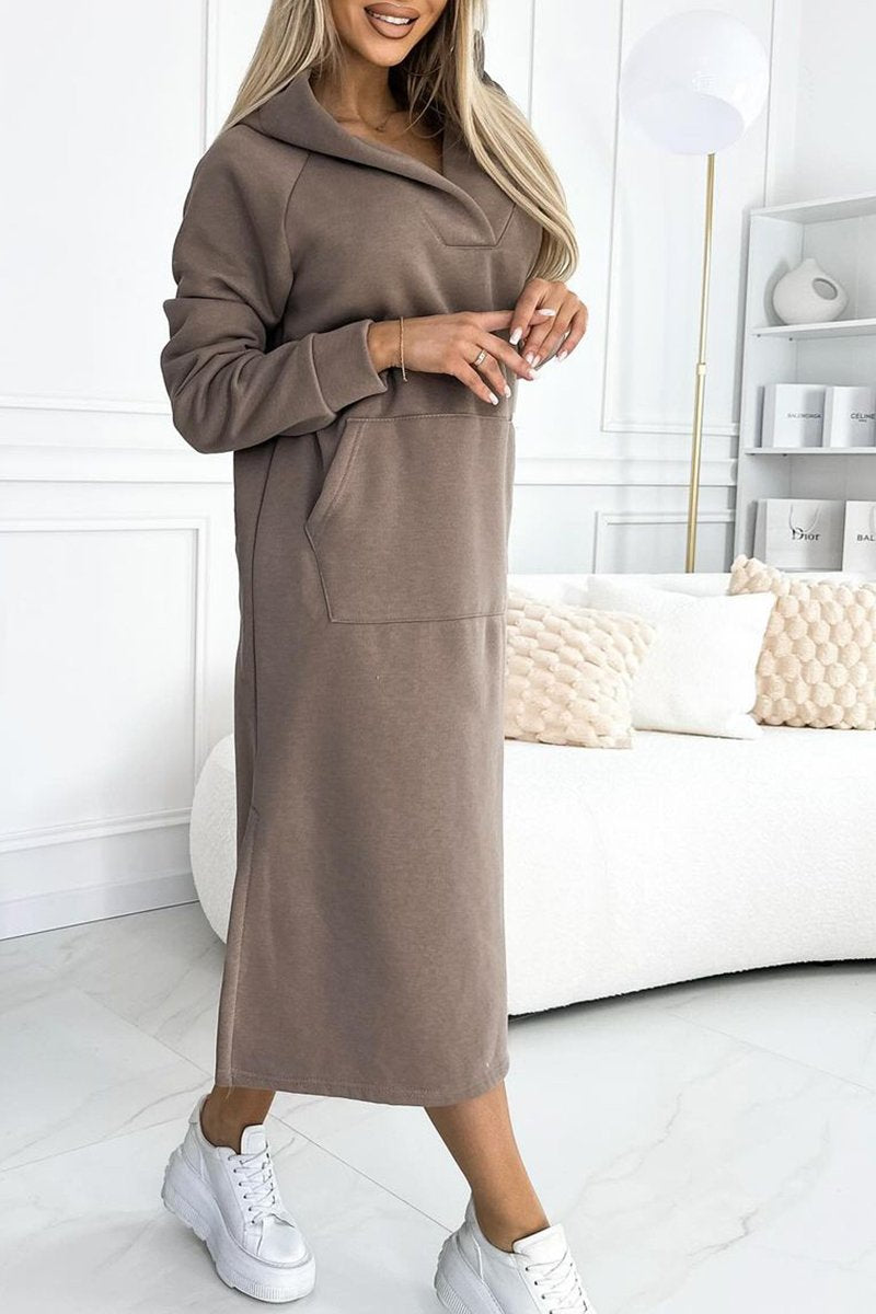 Women's Autumn and Winter Solid Color Casual All-match Long Dress with Hood