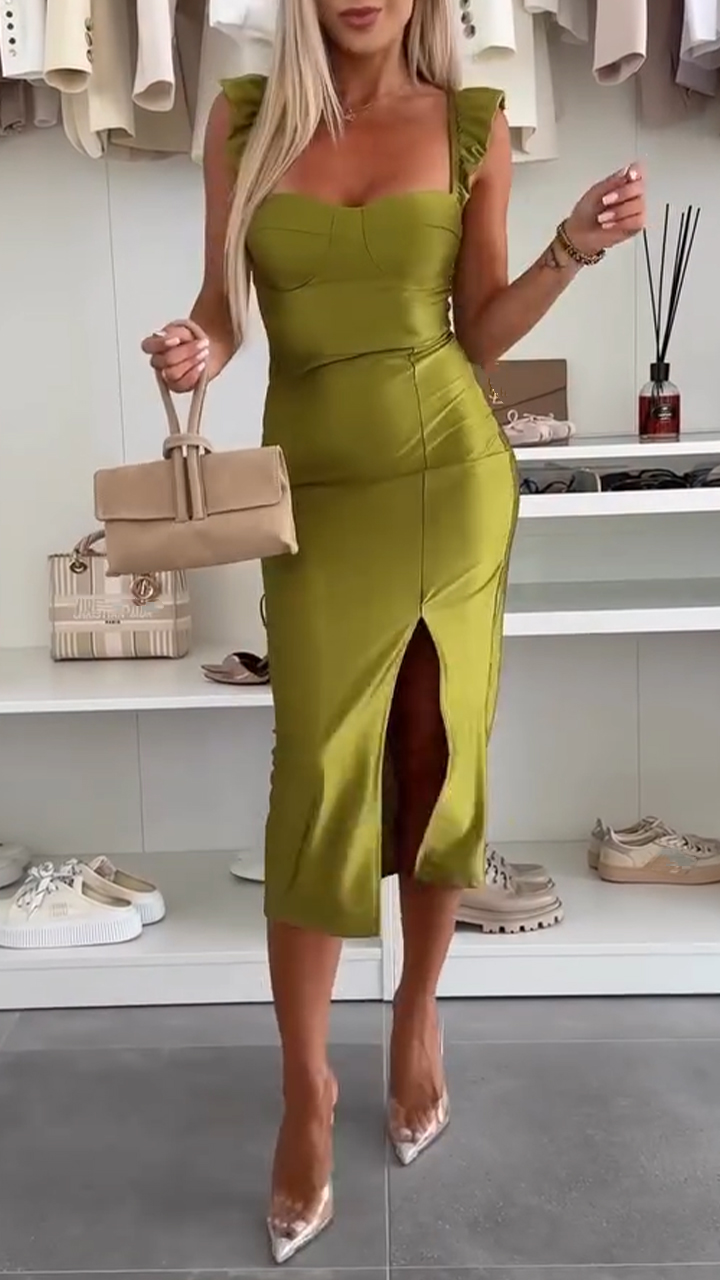 Women's Solid Color Slim Fit Slit Temperament Dress