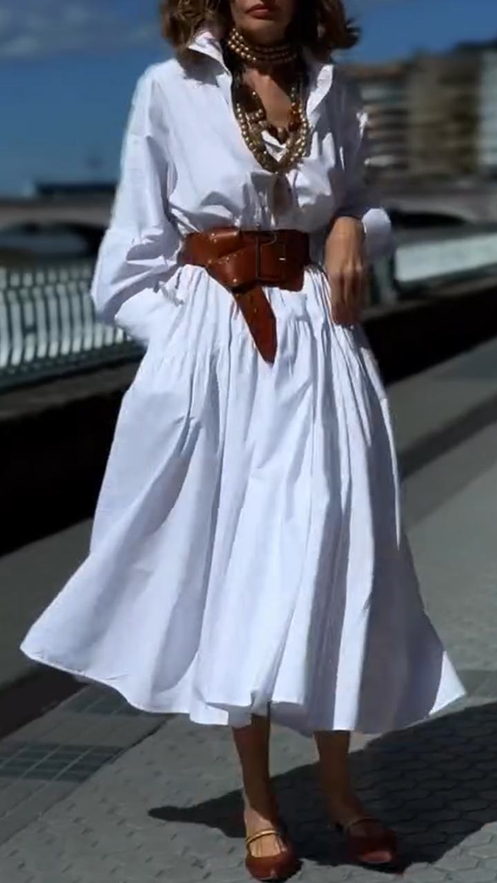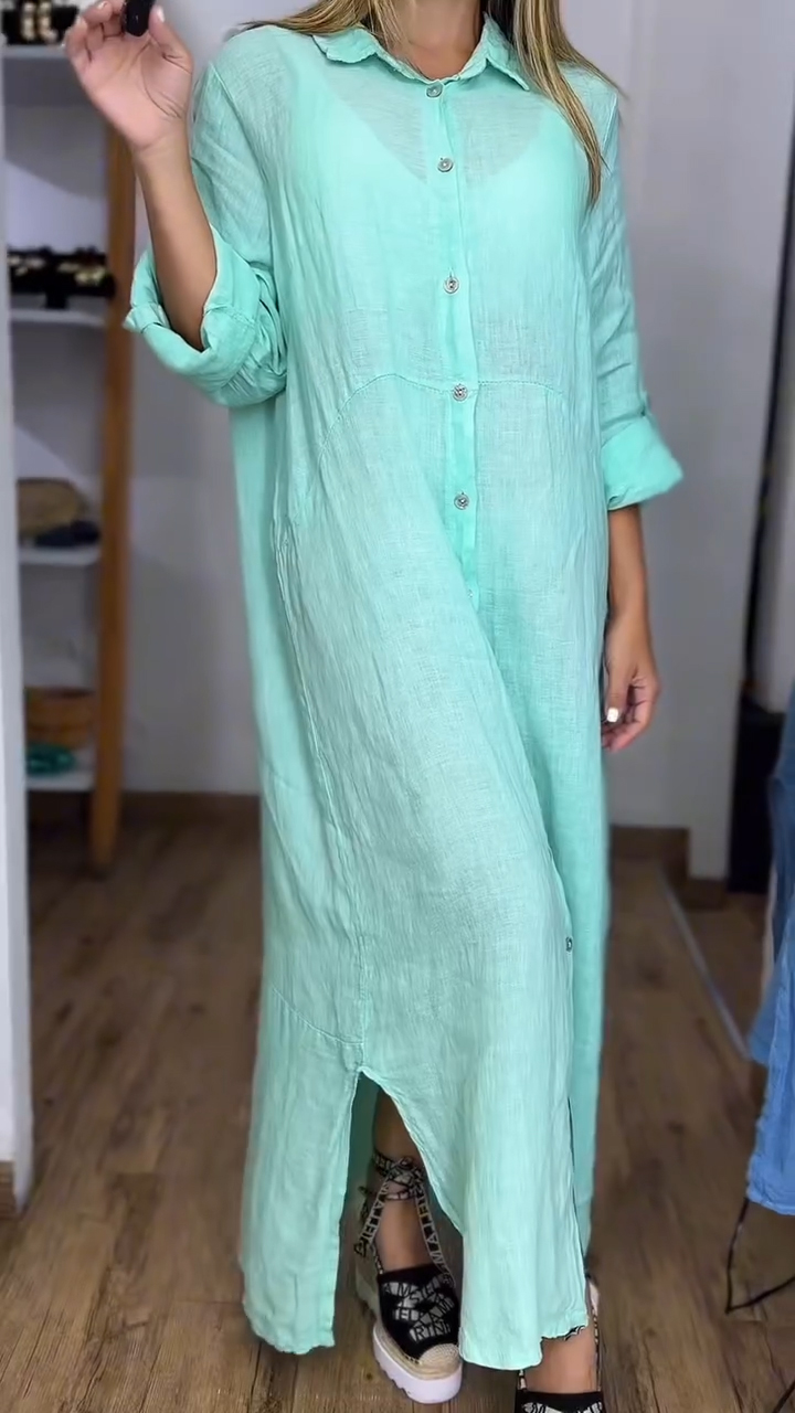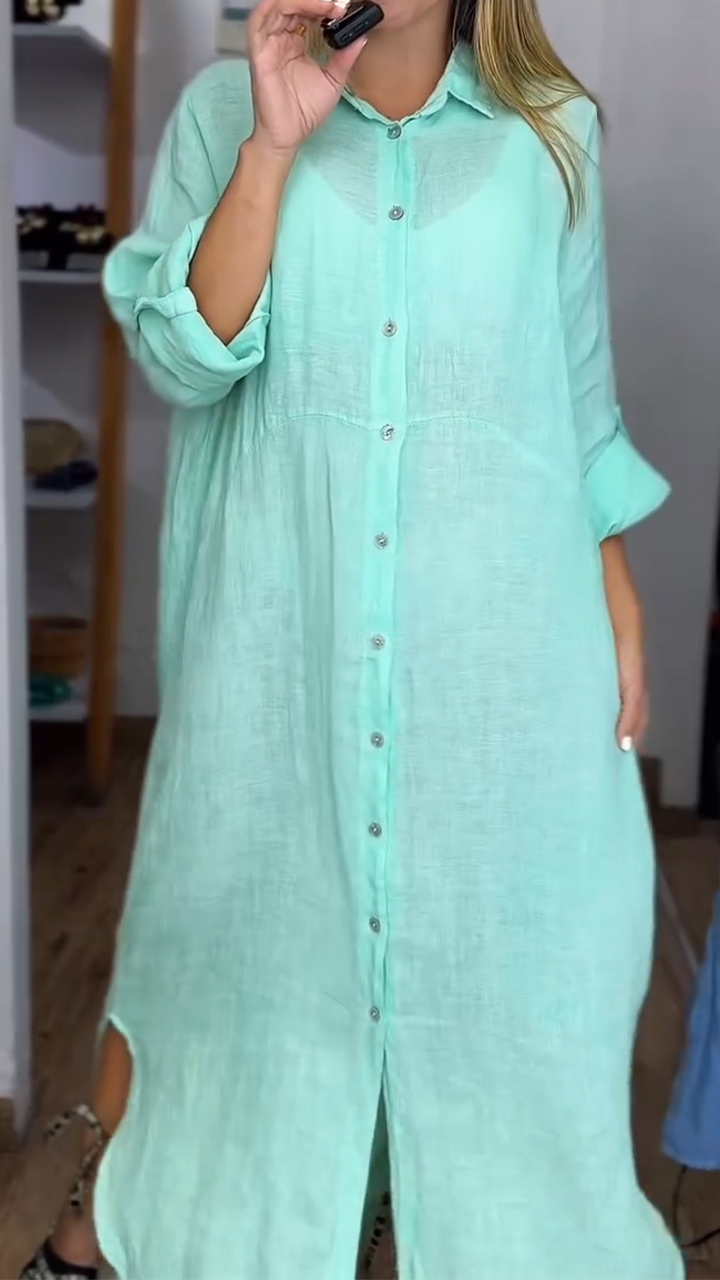 Women's Lapel Button Half-open Cotton and Linen Casual Dress