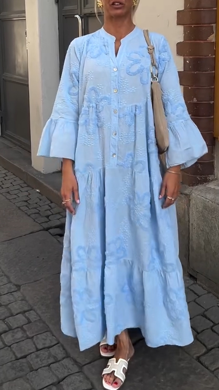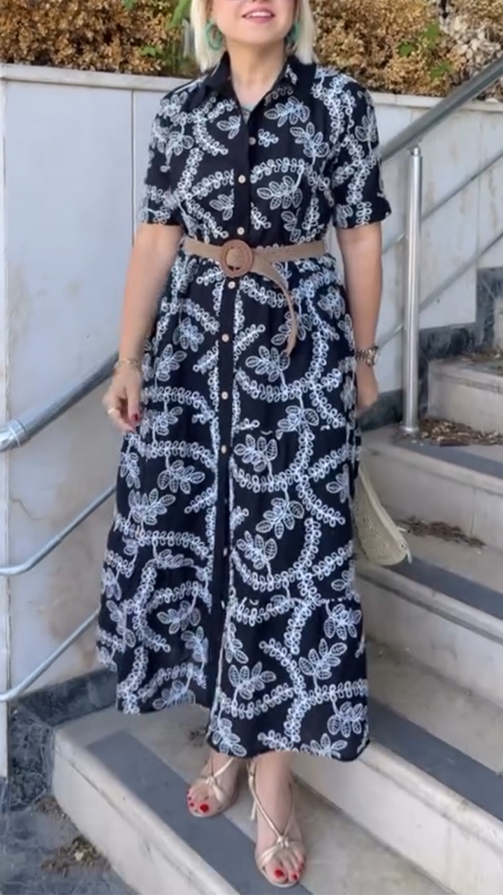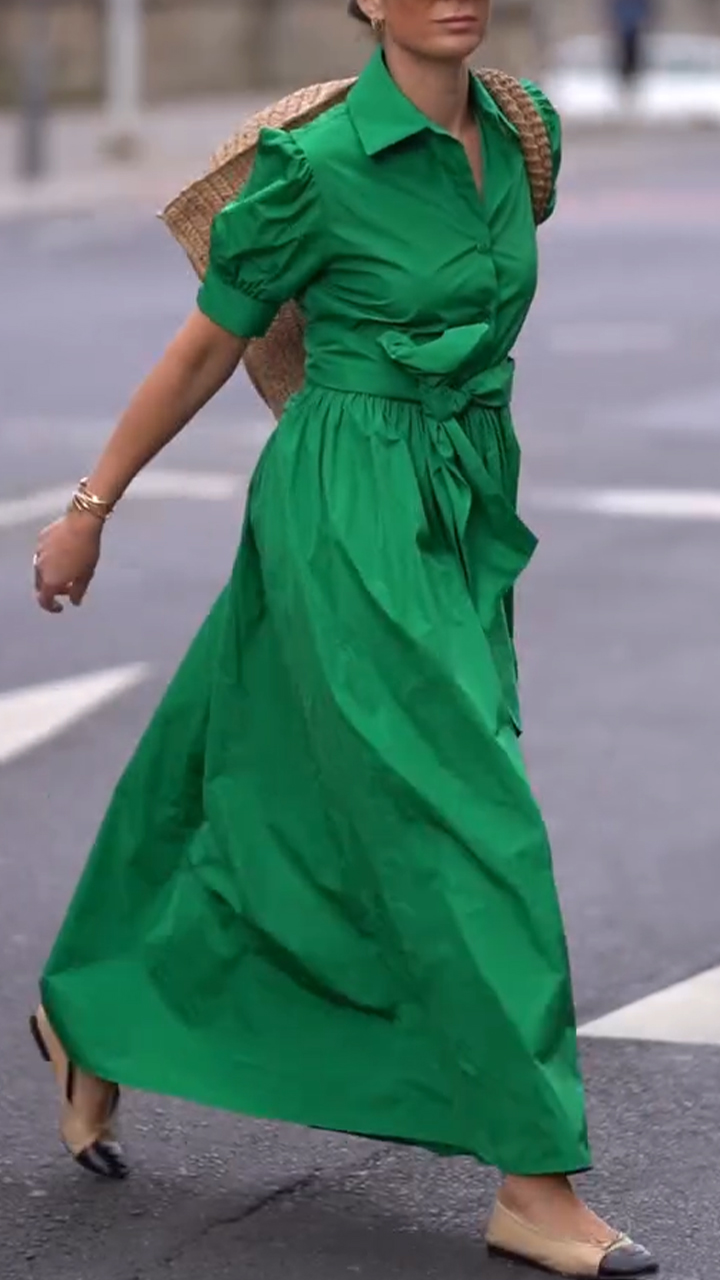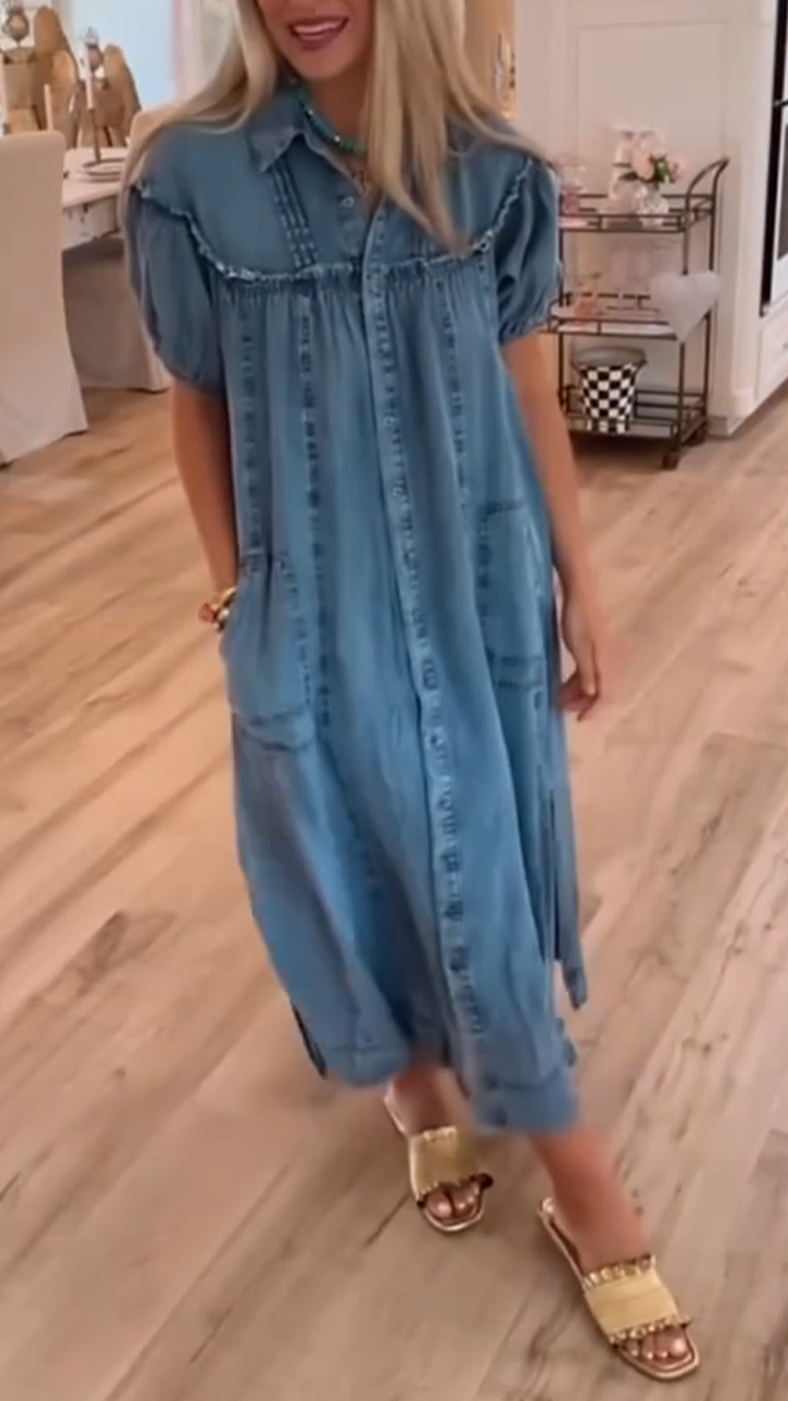 Women's Lapel Button Half-open Cotton and Linen Casual Dress