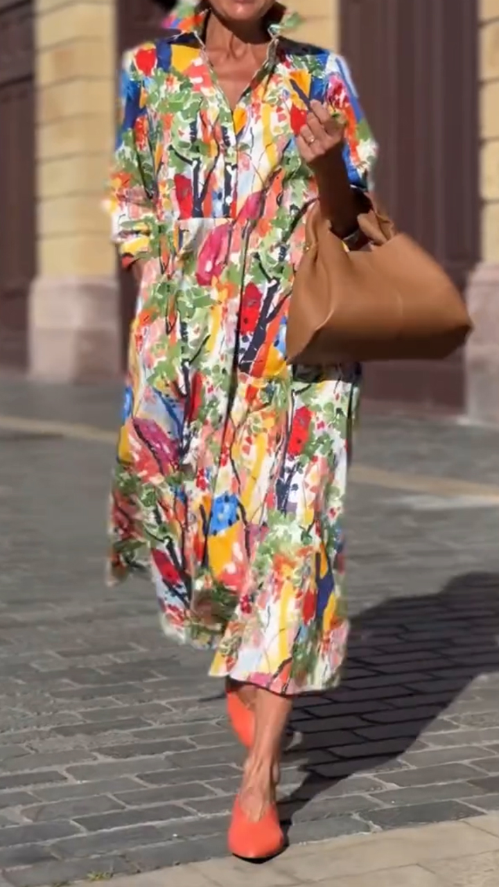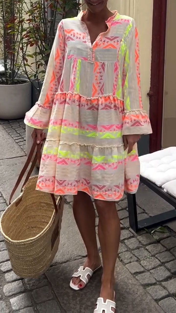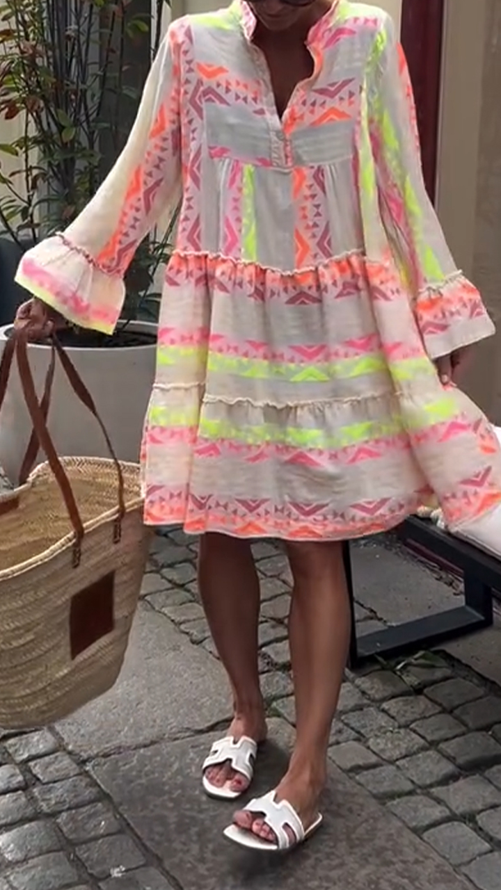 Women's V-neck Sleeve Printed Loose Casual Dress