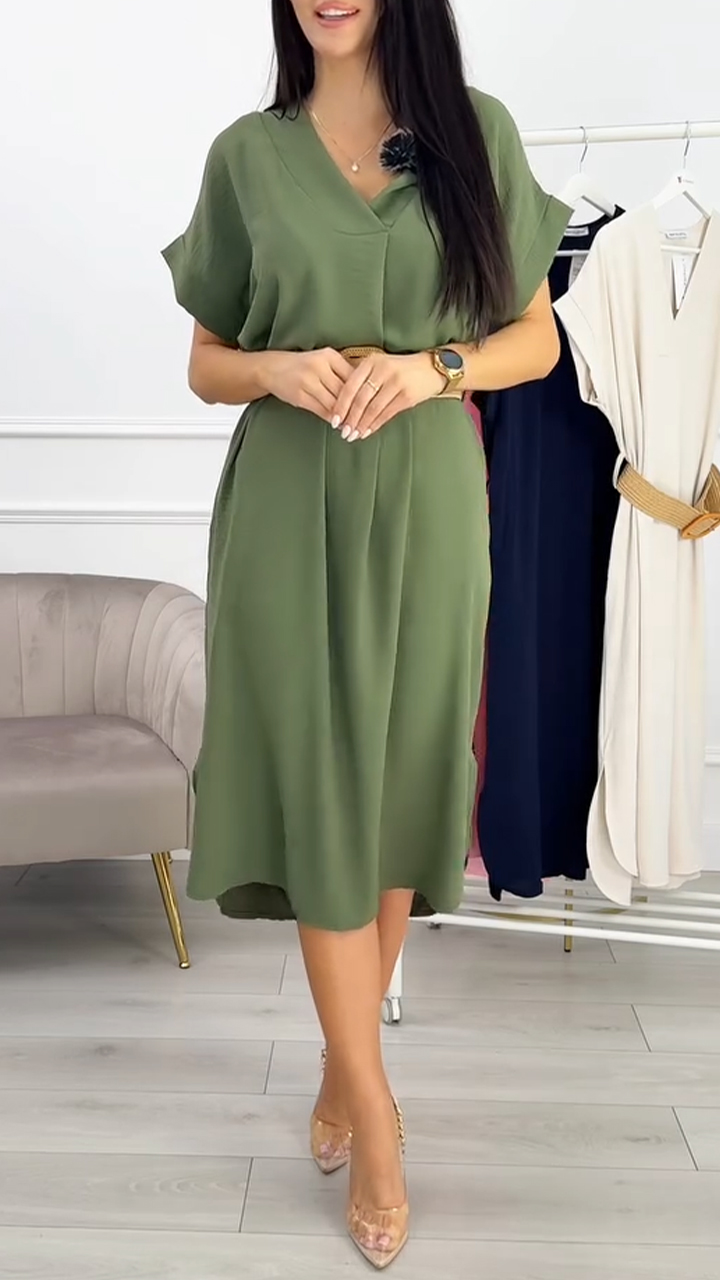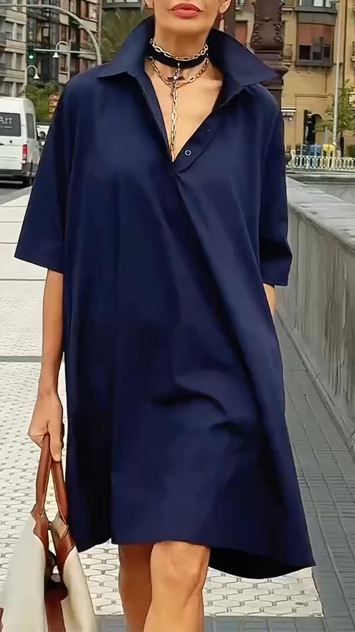 Ladies' Collar Solid Color Loose Fit Casual Dress