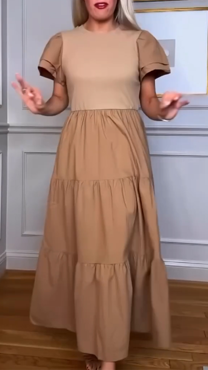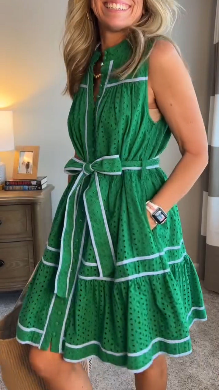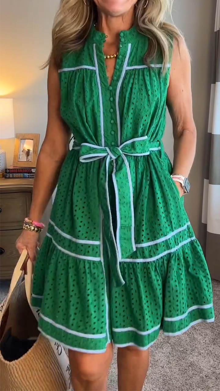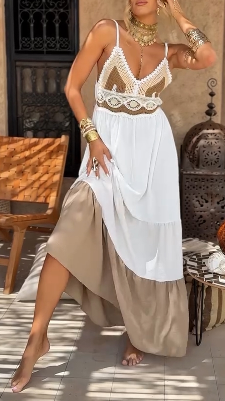 Women's V-neck Stitching and Lace-up Hollow Casual Dress