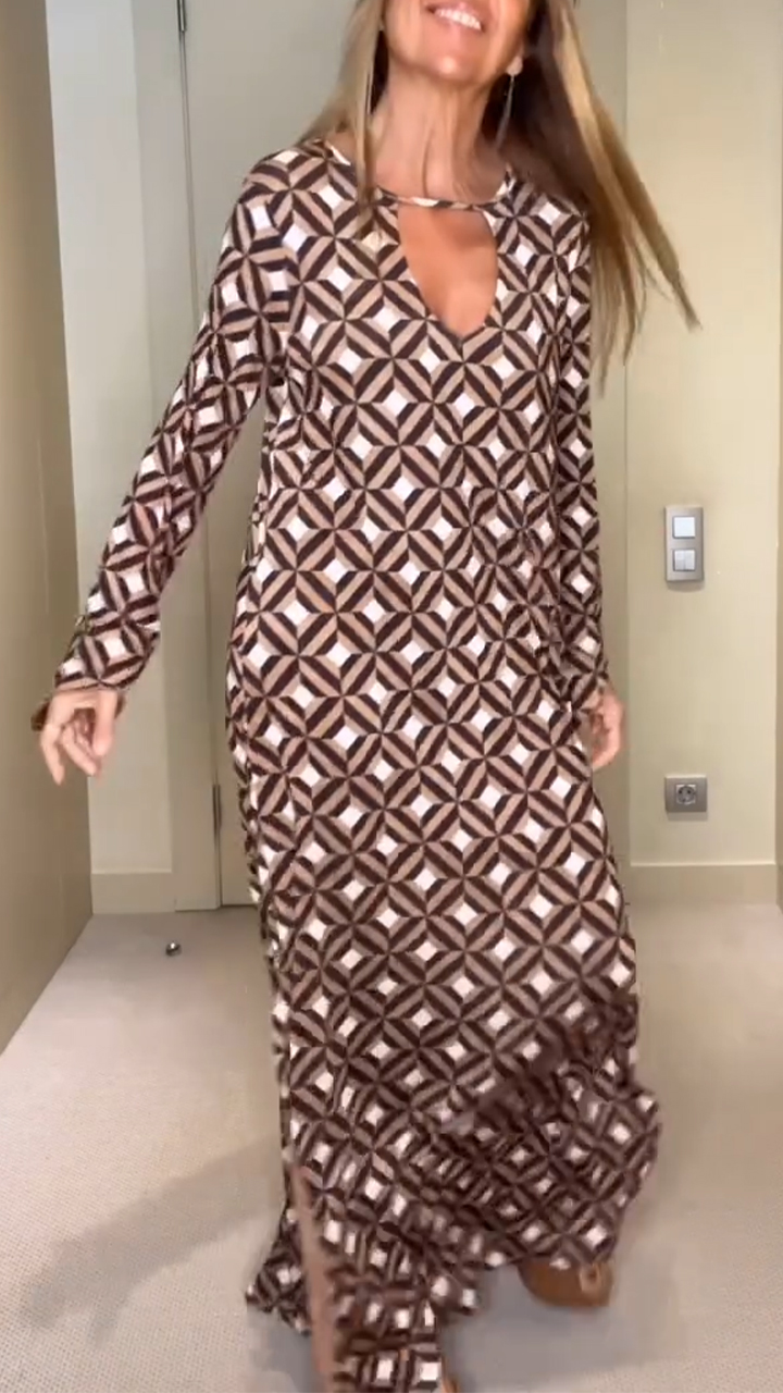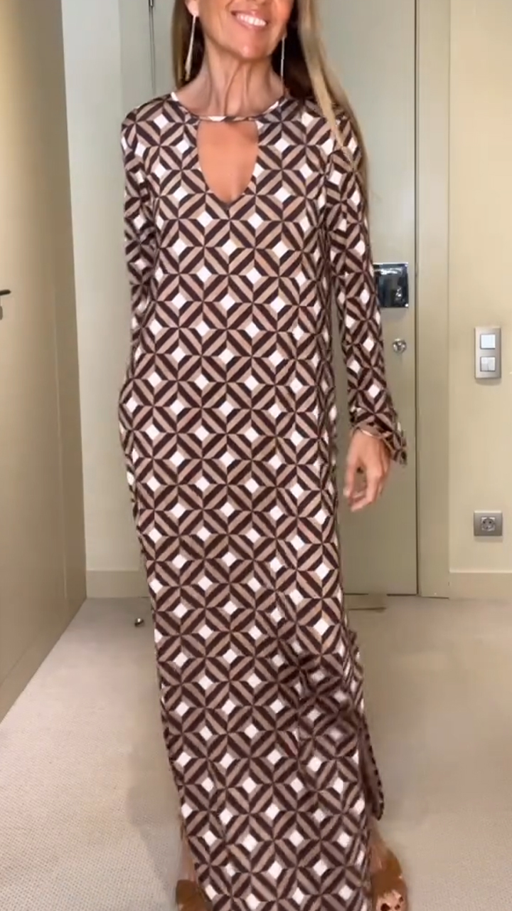 Ladies' V-neck Printed Hollow Loose Casual Dress