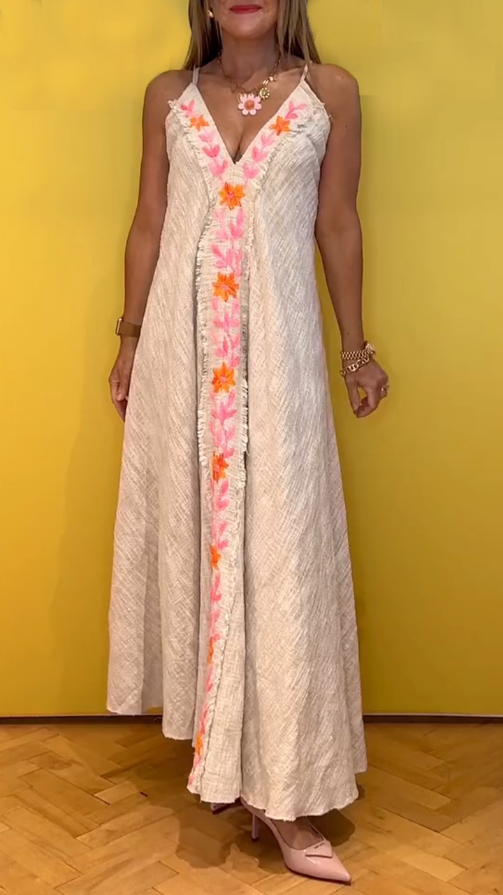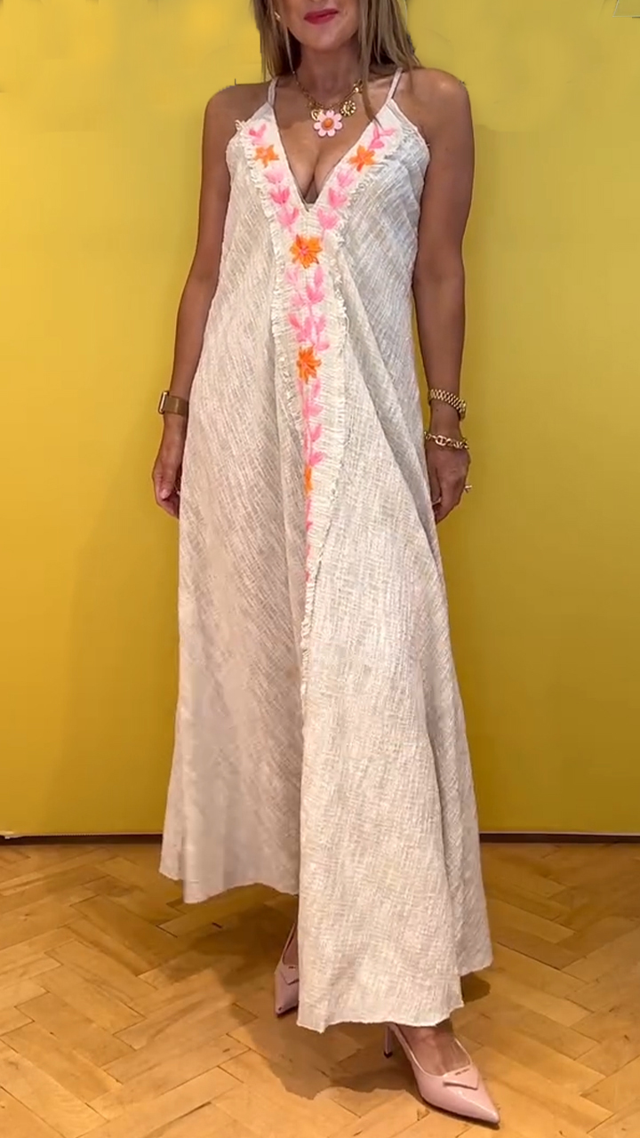 Women's Cotton and Linen Suspender Holiday Casual Dress