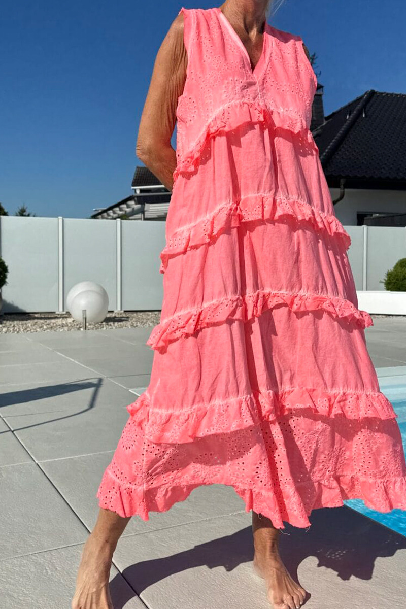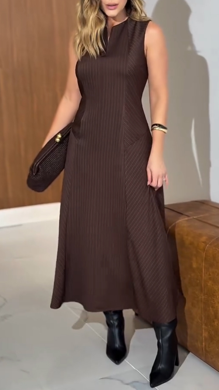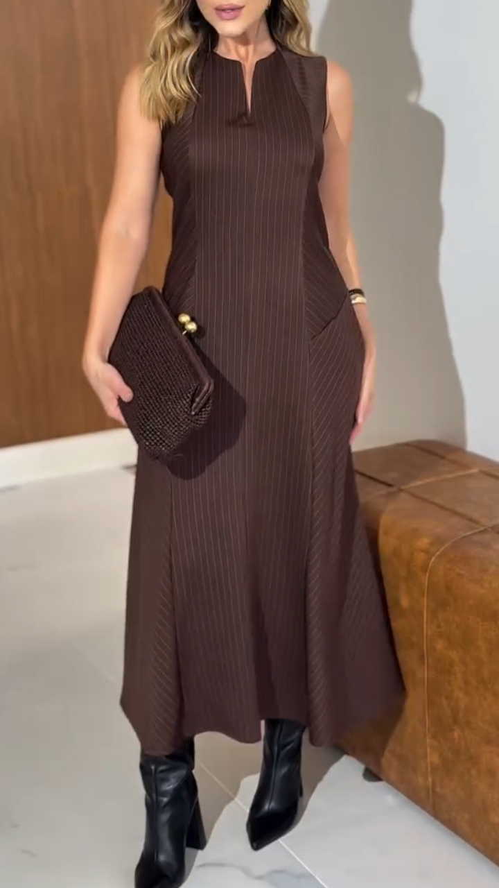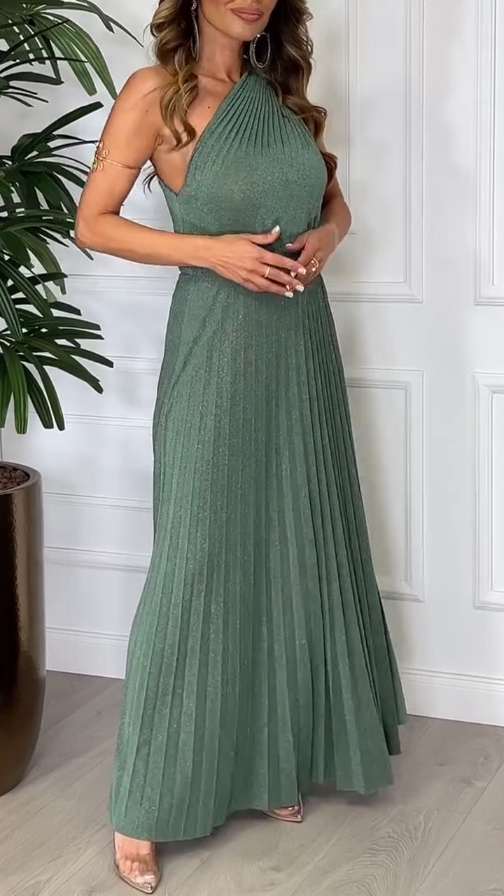 Women's Sleeveless V-neck Pleated Slit Steel Dress