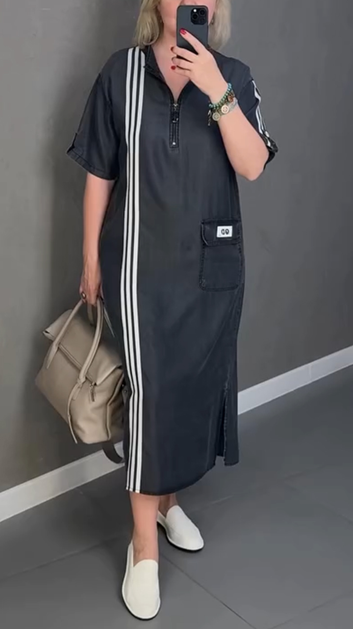 Ladies' Lapel Patchwork Striped Loose Casual Dress
