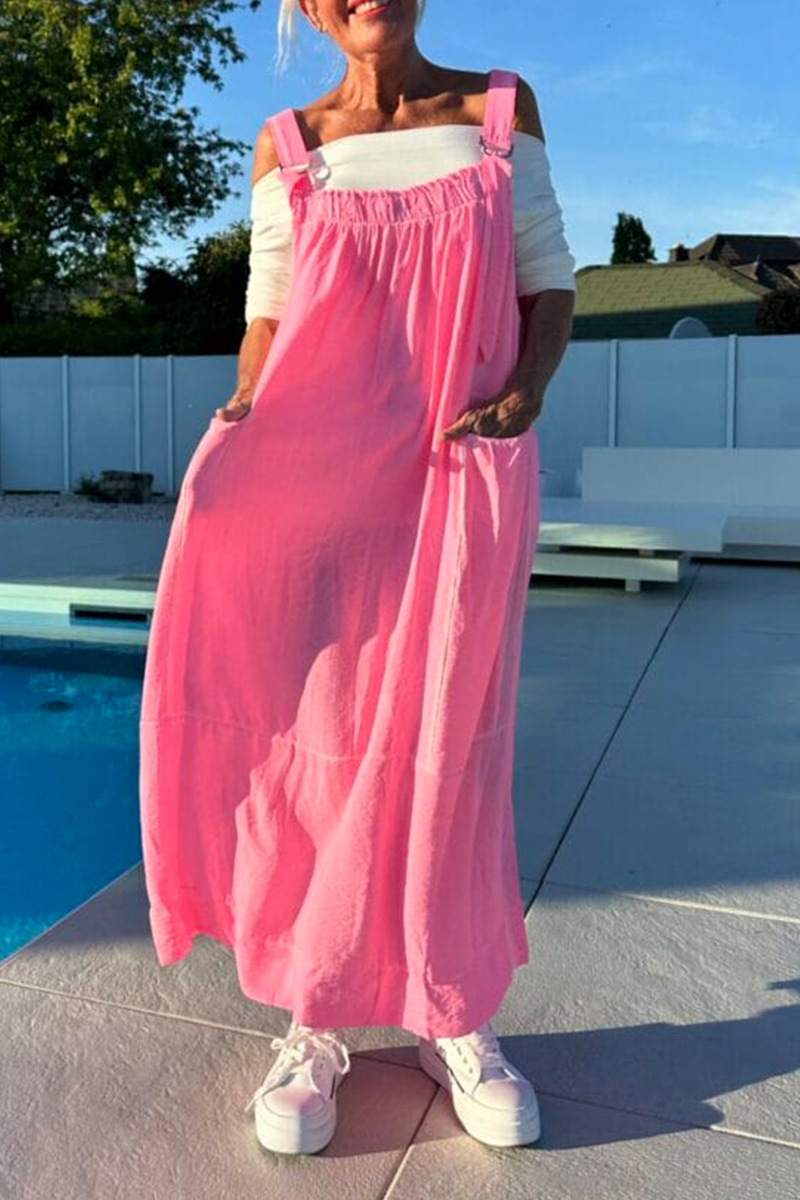Women's Solid Color Shoulder Strap Loose Casual Dress