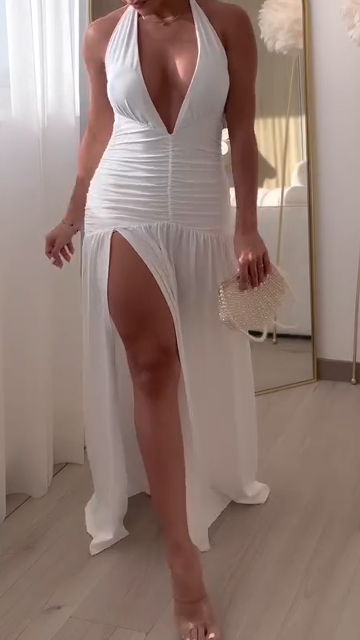 Ladies' Neck Hanging Hollow Slit Temperament Party Dress