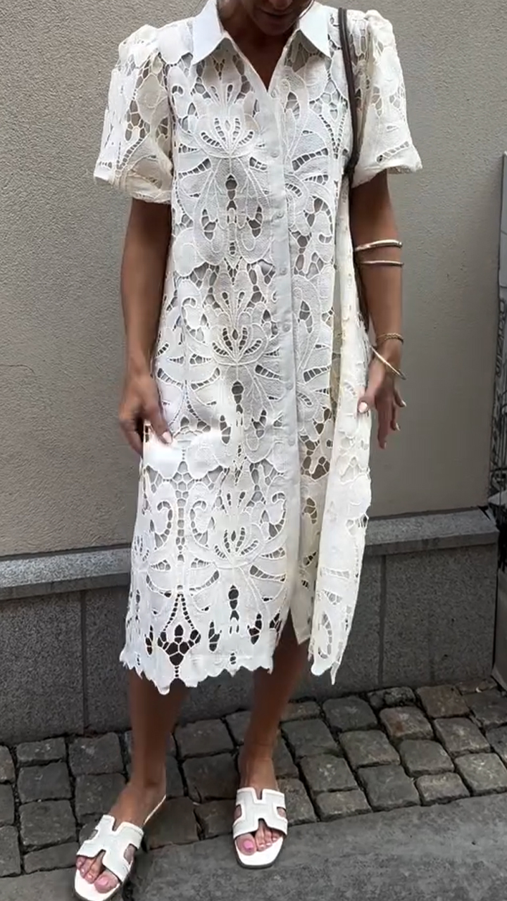 Women's Round Neck Hollow Knitted Casual Holiday Dress