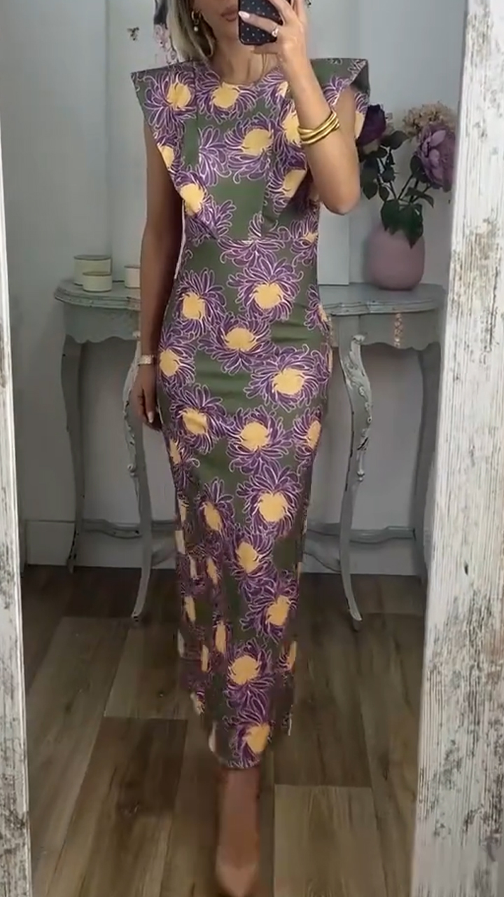 Women's Sleeveless V-neck Printed Casual Holiday Dress