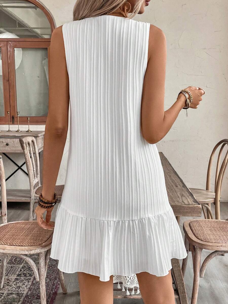 • Women's V-neck Buckle Splicing Solid Color Casual Dress
