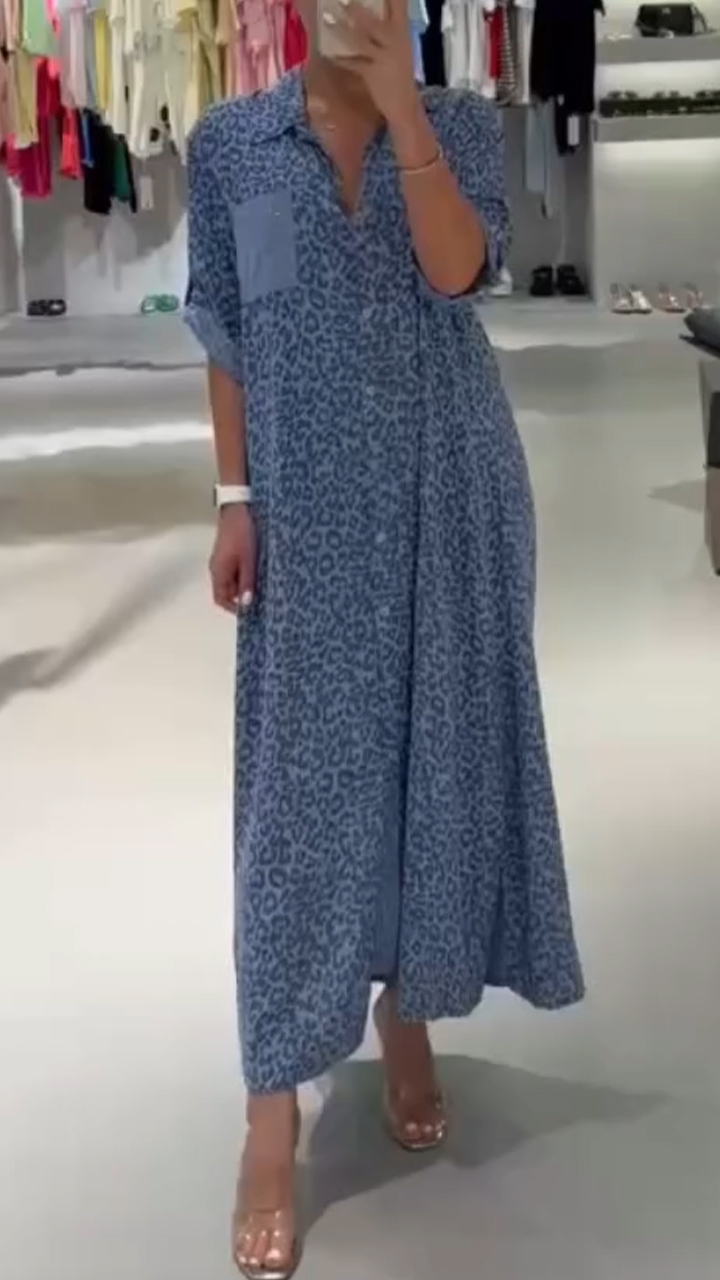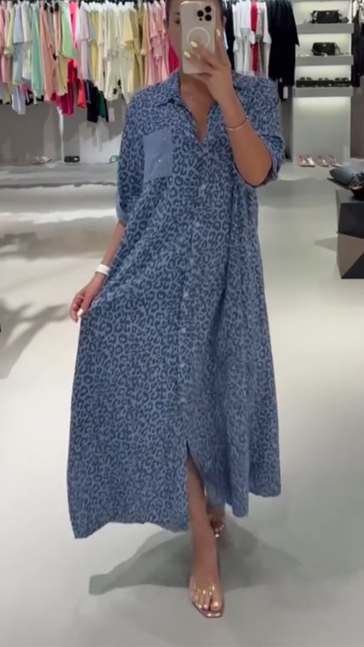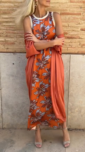 Ladies' Round Neck Printed Dress+ Cloak Casual Temperament Set