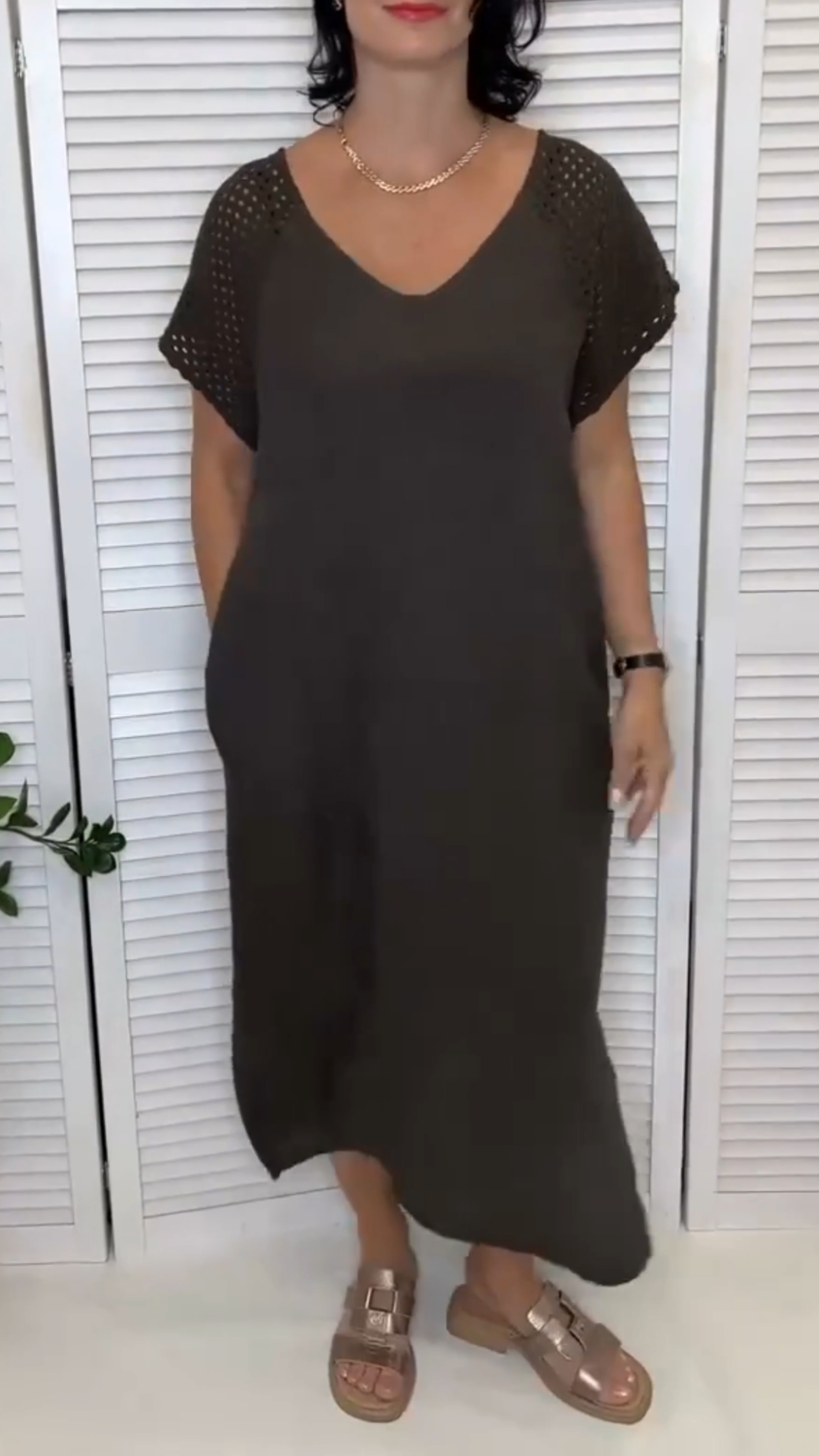 Ladies' V-neck Patchwork Hollow Loose Casual Dress